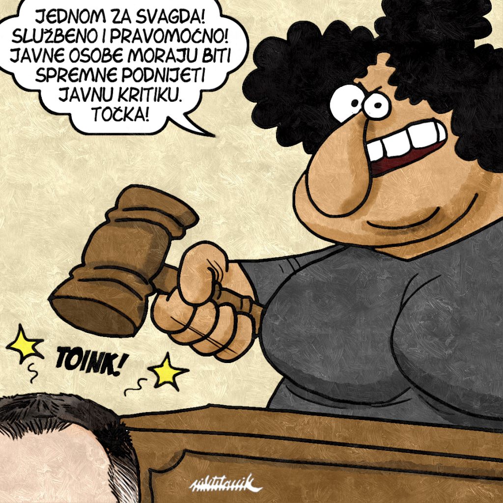 – Time je prvostupanjski sud pravilno ocijenio da je kritika usmjerena na djelovanje javne osobe, odnosno da su inkriminirane karikature objavljene u okviru javnog djelovanja privatnog tužitelja, što je i sam privatni tužitelj potvrdio svojim iskazom – stoji u presudi.Dodali su da je radnja okrivljenika učinjena u kontekstu novinarskog izražavanja i s ciljem javne kritike aktualnih društvenih događaja.